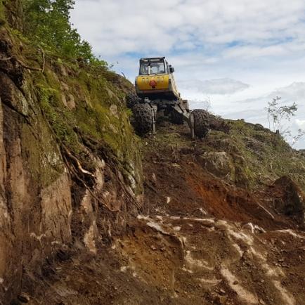 Vi tilbyr et bredt spekter av tjenester for både anleggs- og skogsarbeid, med fokus på utfordrende terreng der hvor tradisjonelle maskiner ikke når frem. Vår Menzi Muck klatremaskin gir oss muligheten til å utføre oppdrag som andre ikke kan.