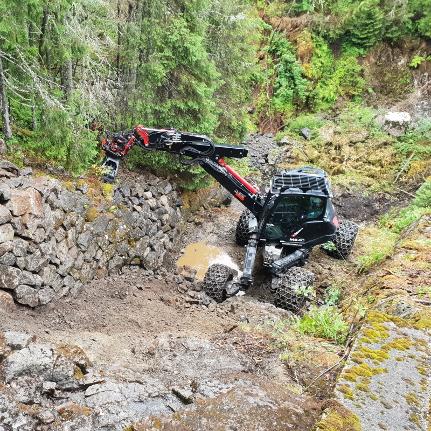 Vi utfører graving, boring og skogsarbeid med Menzi Muck klatregravemaskin, der vanlige maskiner må gi opp.